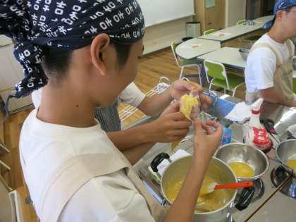 今日の家庭科は調理実習をしました。今月はデザートの月ということで、「シュークリーム」を作りました。今回、シュー皮はもちろんのこと、中身のカスタードと生クリームも手作りです。