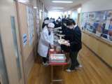 今年最後の給食。給食委員や当番が手際よく準備をしています。