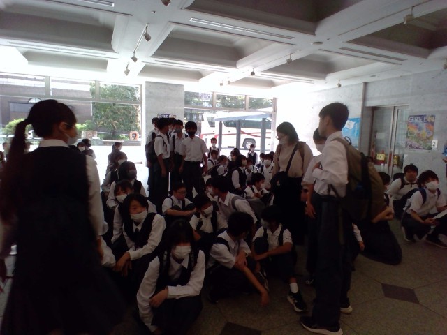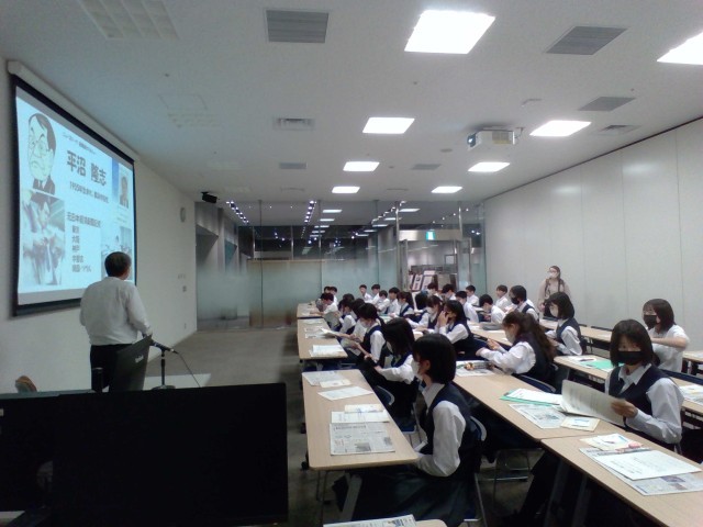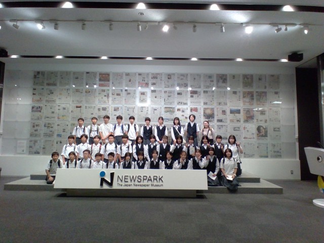 無事に横浜に到着しました。1組は早速、新聞博物館で新聞の歴史などについてレクチャーを受けています。