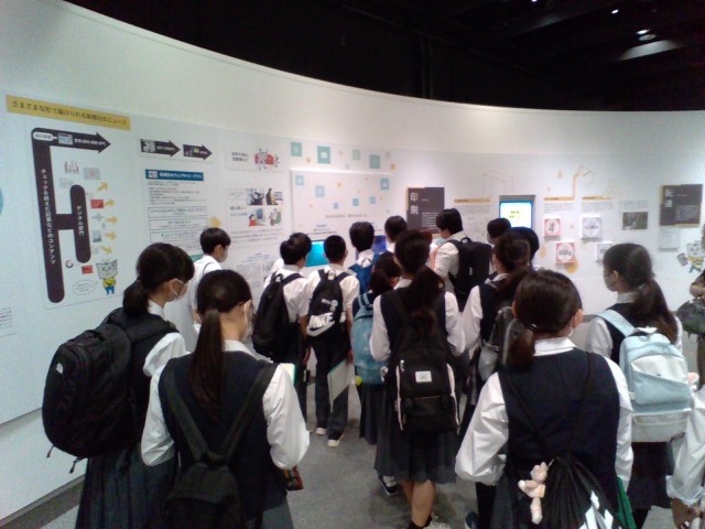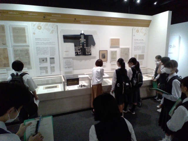 2組は新聞博物館にて、館内案内を真剣に聞き、メモを取りながら活動しています。