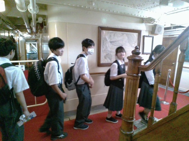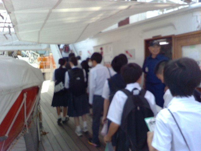2組は日本丸の見学中です。