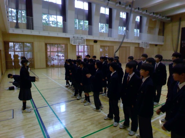 いよいよ明後日に迫ってきた、れんが祭(舞台の部)合唱コンクールに向けて最終確認を行いました。写真は、クラスごとに声出しをしているところです。ぜひ本番では、合唱だけでなく移動や姿勢、態度なども見ていただければと思います。1学年の力を発揮していこう!