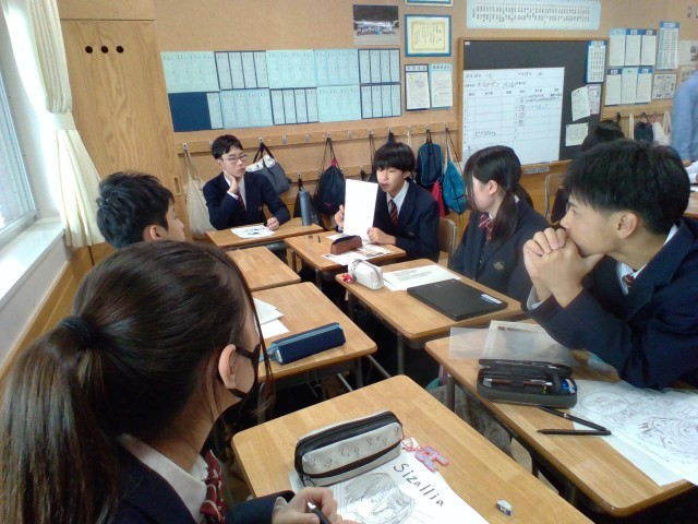 2年生は、職場体験で学んだことを漫画にして、漫画ビブリオバトルを行いました。