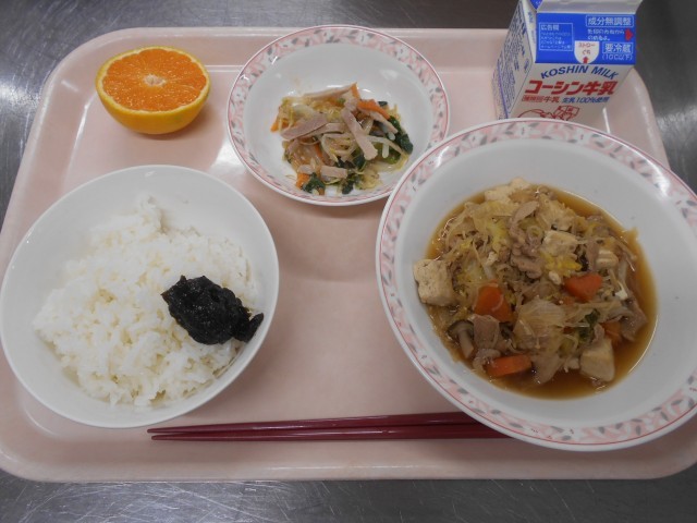 海苔に含まれるビタミンB1、B2は糖質を効率よくエネルギーに変える働きがあります。日常生活のエネルギー源である糖質や脂質はそのままではエネルギーに変換されないので海苔などのビタミンB群を含む食材がご飯の消化を助け、脳の働きを活発にするなど手助けをしてくれます。「ご飯と一緒に海苔を食べる」ことはおいしいだけでなく、糖質の多いご飯を体の中で効率よくエネルギーに変えるのに最適な組み合せです。今日は、のりの佃煮をつくりましたのでご飯と一緒に食べてpower-upしましょう!!