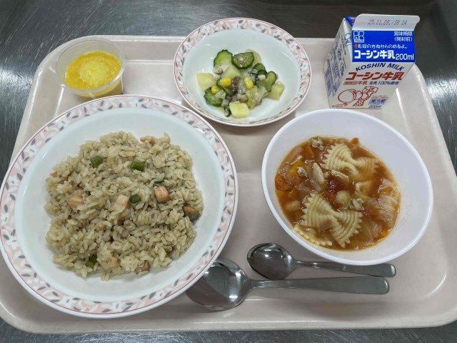 ハロウィンと言えば「ジャック・オー・ランタン」。かぼちゃの中をくり抜いたこの飾りはハロウィンの定番ですね。今でこそかぼちゃが主流ですが、昔はかぶを使っていたんだとか。ハロウィンはヨーロッパ民族のケルト人の収穫祭が起源とされています。この収穫祭は秋の収穫のお祝いと魔物を追い出すという2つの意味を持ちます。このときに作られたランタンは「かぶ」を使っていました。この文化がアメリカに伝わった時に入手しやすかった「かぼちゃ」を使うようになったそうです。給食ではスープにかぶを、かぼちゃをプリンに使いました!