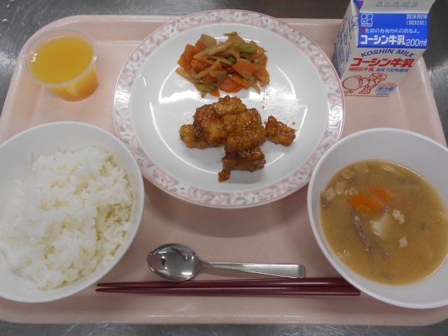 11月8日のいい歯の日が近いのでかみかみ献立です。昔の人と比べて現代に生きている私たちは、かむ力が低下してきているといわれています。よくかまないと食べられない伝統的な食べ物が敬遠され、やわらかく口当たりのよい食べ物が好まれるようになったことも関係するようです。