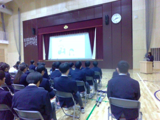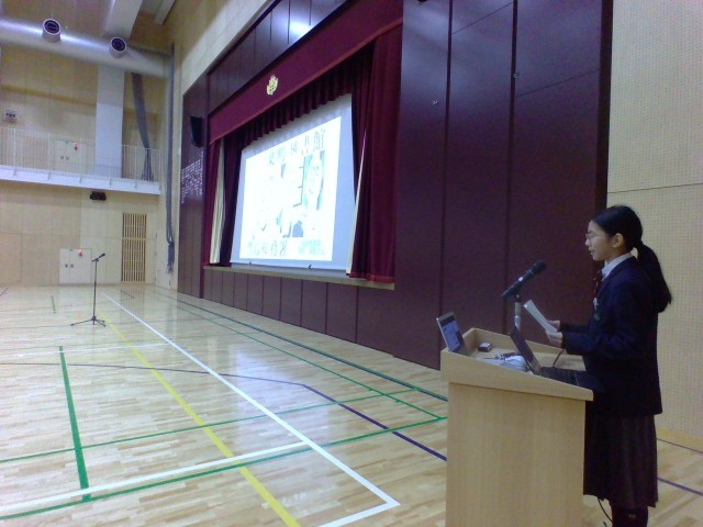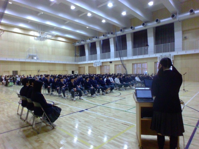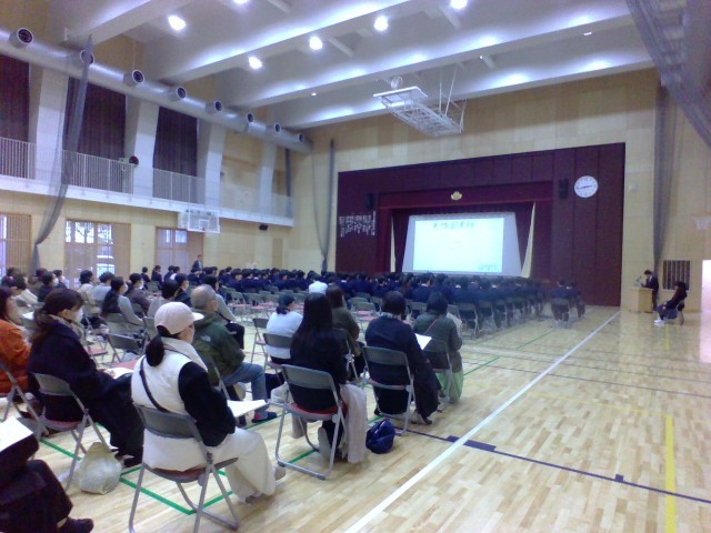 スキー教室の保護者会では、最初に職場体験のビブリオバトル最優秀賞生徒の表彰と発表を行いました。