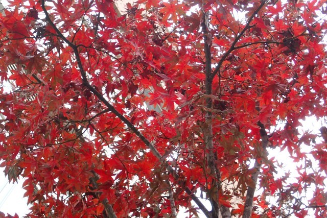 各学級でブックトークを行いました。朝の時間を用いて読書週間の一環です。ある学級では百田尚樹氏の「永遠の0」辻村深月氏の「かがみの孤城」をそれぞれの生徒がブックトークをおこないました。10代前半でしか感じることのできない感覚があります。どの本を選ぶか。どのように紹介するか。聞いている生徒は何を感じるか。黒板の前で、お二人ともクイズを交えながら、それぞれの魅力を伝えています。その感覚は、感性と言ってもよいのかもしれません。紙から受け取る文字と、画面上で受け取る文字の違いが研究から言われるようになりました。感性の瑞々しさ、ブックトークを聞きながら感じたことです。 写真 校内のヤマモミジです。