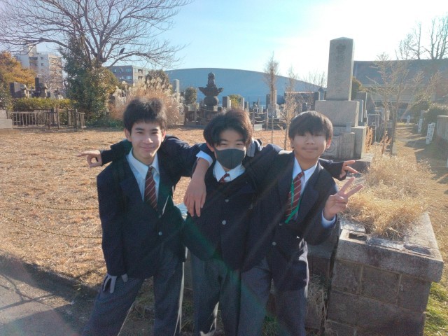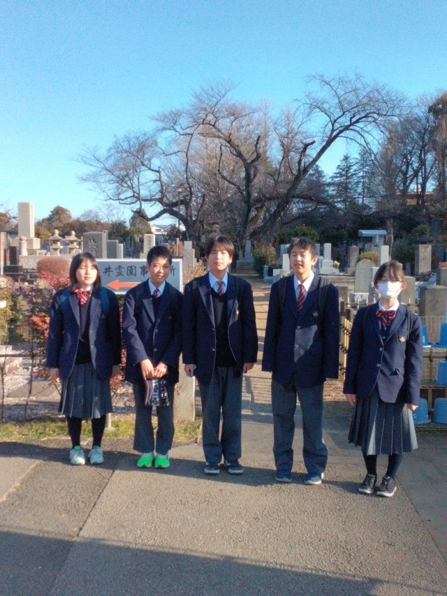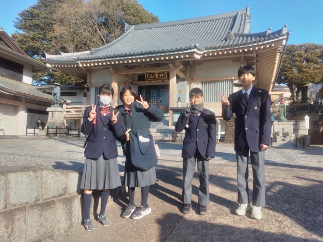 全班、学校を出発し、都電沿線の寺社や公園を巡っています。