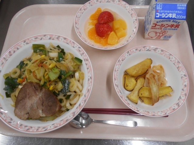 3年生に給食アンケートを取りました。アンケートの中で上位だったものを2月と3月の給食で提供していきたいと思います。アンケートの中でみそラーメンは、主食部門の第3位でした!今日のみそラーメンは、チャーシューが1人1枚のった豪華バージョンです。野菜チップスも副菜部門で第3位でした。フルーツポンチもリクエスト献立です。「今日の給食楽しみ」「みそラーメン美味しかったです」とうれしい声をたくさんもらいました。