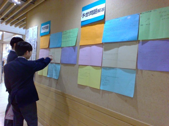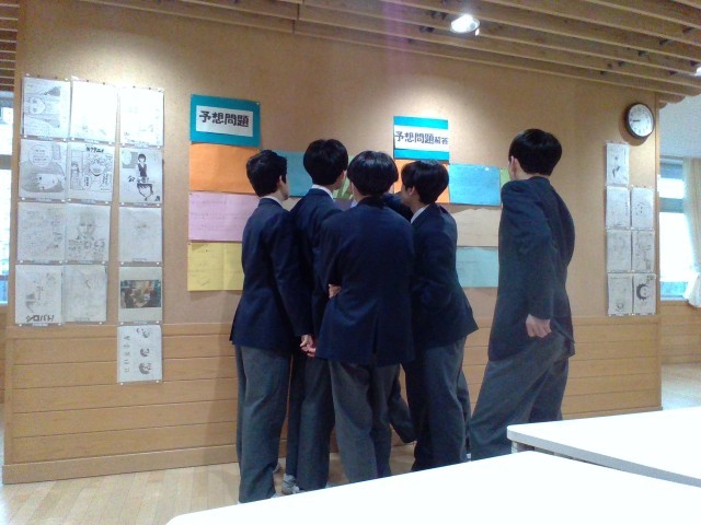 学級委員の作成して掲示する予想問題で勉強し合う姿が多く見られるようになりました。