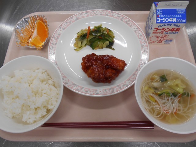ヤンニョムチキンは、3年生の給食アンケートで、主菜部門第2位でした。