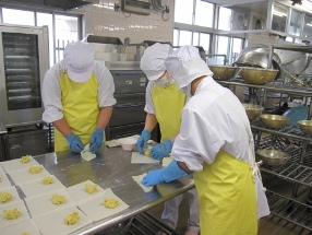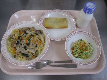 今日のデザートは、スイートポテトパイでした。蒸して裏ごししたさつまいもに、牛乳、砂糖、バター、生クリーム、卵を混ぜて具を作りました。それを春巻きの皮で包んで揚げました。サクサクの皮のパイになりました。
