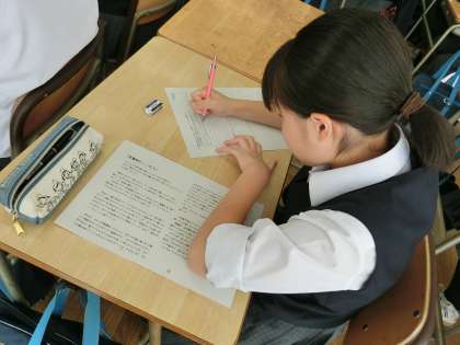 今日の道徳は「傍観者でいいのか」という題で行いました。学校生活の中でほとんどの時間を過ごす学級をよりよいものにしていくためには、どうすればよいのか。架空の学級の例を使って考えました。