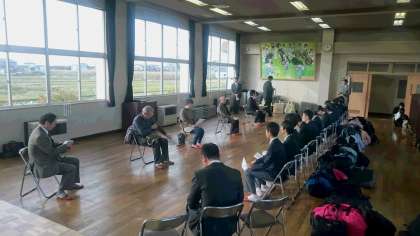 斎藤市長様にもご挨拶頂き対面式を行いました。これから各農家に別れてのいなか体験が始まります。