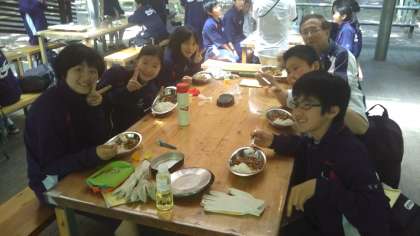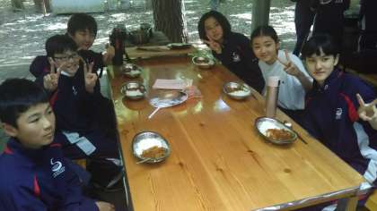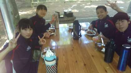 班員が協力して作った美味しいカレーの完成です。いただきま〜す。