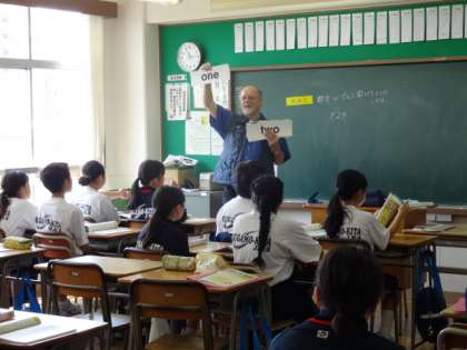 1年生の英語の授業ではALTの先生が数字の発音練習をしていました。