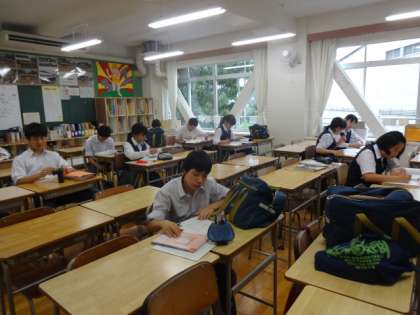 始業前の教室では、静かに自習をしている生徒も多く見られます。