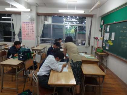 放課後の教室では、試験に向けて質問教室が開かれています。学習が進んでいる生徒たちは質問のポイントも的確になってきます。来週の月曜日・火曜日も開かれる予定です。