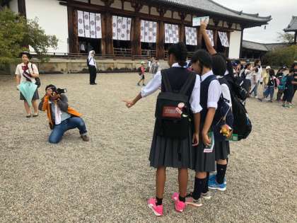 法隆寺を見学中