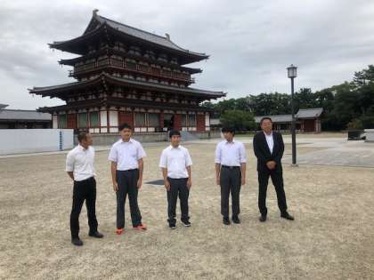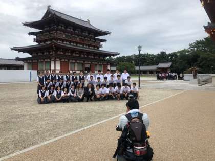 薬師寺では記念写真を撮影後、薬師如来などの国宝を手を合わせて拝みました。