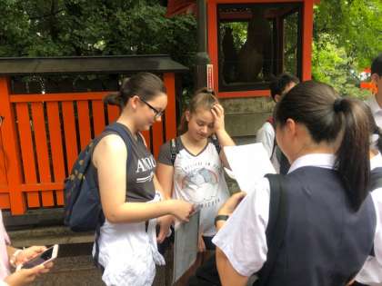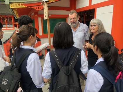 来週東京に来る予定の方に、ぜひ巣鴨に来てほしいと宣伝したり、デンマークからの観光客の方と話をした班もありました。