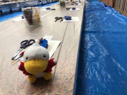 8時から9時まで、二会場に分かれて、漆器の絵付けを行います。