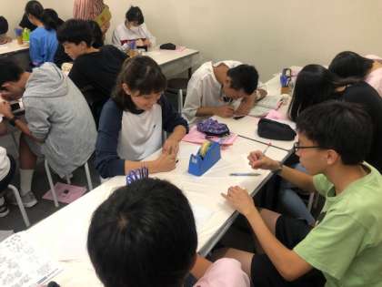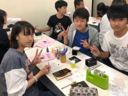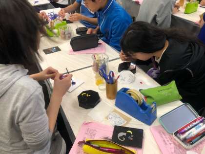 下絵を写したあとは、油性の塗料で、色を乗せていきます。