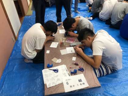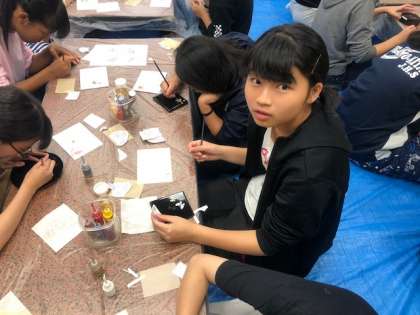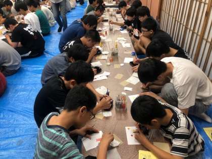 1、2、6組は宿舎の大広間で、絵付けを行なっています。