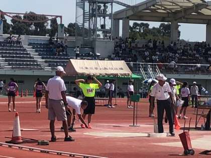 女子砲丸投げです。先生も競技役員で活躍中です。