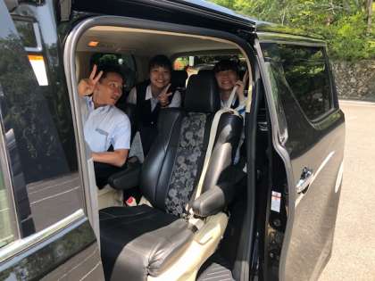 生徒たちは、高級ワゴンタクシーでゆったりと移動しています。