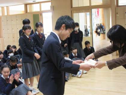 9月にあったスペリングコンテストの表彰がありました。冬休み明けのコンテストもがんばって満点とれるように努力しましょう。