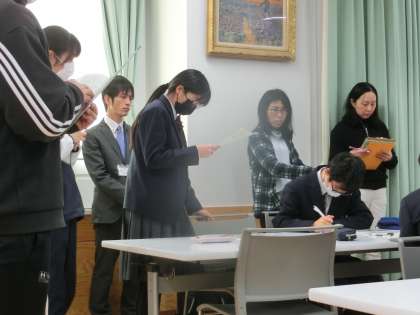 12月20日(水)5時間目、2学年道徳研究授業を実施しました。本校では、今年度、校内研究の主題を「特別の教科 道徳における指導の工夫」と設定し、定期的に校内研修を実施しています。講師の先生をお招きし、道徳授業の指導の工夫を話し合うことができ、日々の道徳の授業を研鑽するきっかけとすることができました。