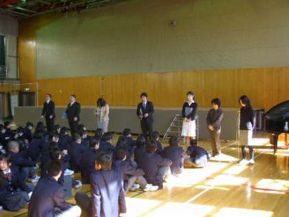 始業式に続き、2・3年生の学級担任、副担任、学年所属の先生方の発表がありました。
