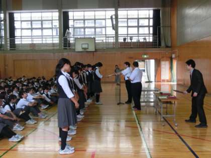 その他、水泳の都大会(個人)で第六位、第七位に入賞した生徒への表彰も行いました。