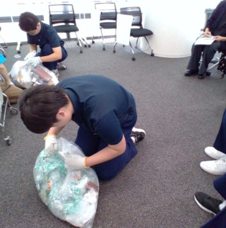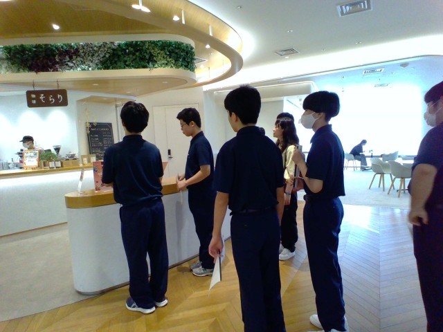 10月3日(金)に、4組は「株式会社 電通そらり」へ職場見学に行きました。清掃作業やゴミ回収の業務、カフェでの接客など、実際に働く人達の様子を見学することで、より一層自分自身の将来について考える機会になりました。見学後は、各々が食べたいファストフード店やお惣菜売り場でテイクアウトをし、みんなでお昼を食べました。今回の学習で学んだことを生かし、生徒一人ひとりが将来働くことのイメージを膨らませることに繋げていきます!