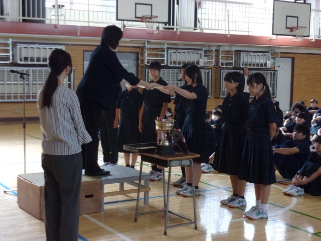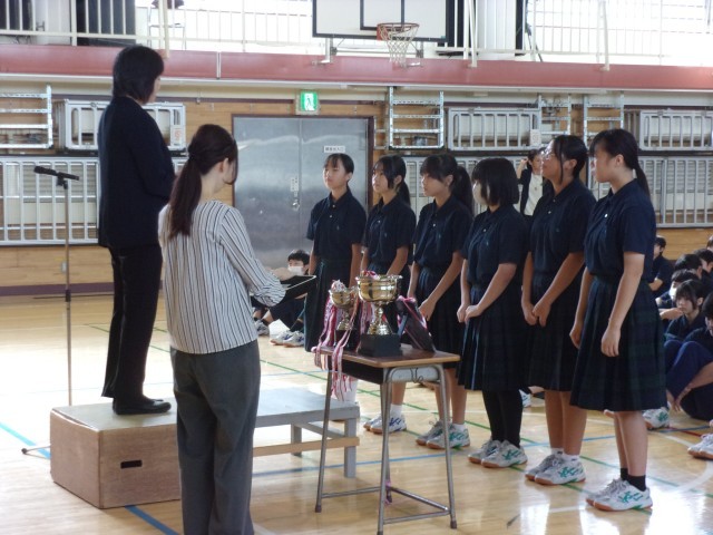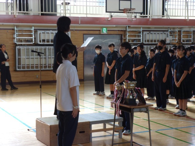 また、東京都中学校学年別水泳競技大会4位入賞、豊島区中学校秋季大会ソフトテニス女子団体優勝、豊島区中学校バレーボール新人大会優勝・優秀選手賞受賞の表彰を行いました。読書の秋、スポーツの秋などといわれますが、何をするにも集中しやすい季節がやってきました。様々なことに積極的にチャレンジしてみましょう!