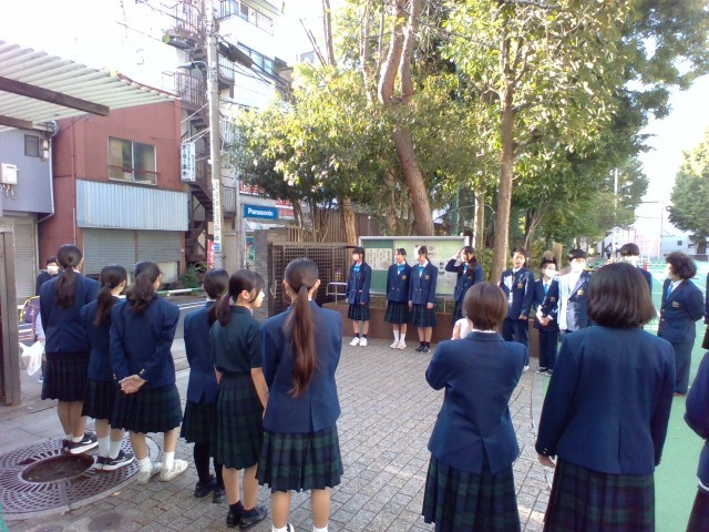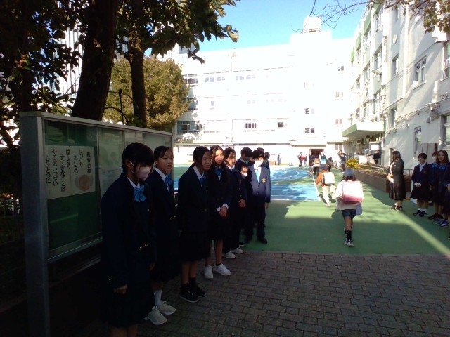 10月30日(木)、小中連携の取り組みとして、西巣鴨中学校の生徒が朋有小学校であいさつ運動を行いました。