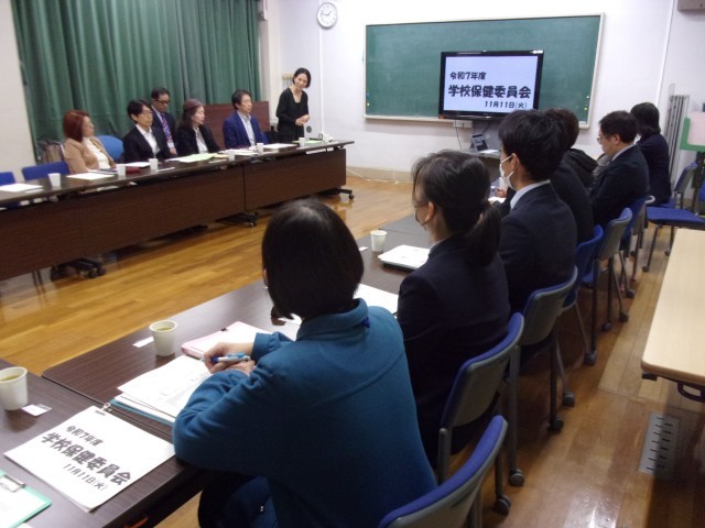 11日の午後に学校保健委員会を開催し、本校の教職員、校医の先生方、保護者の皆様の計21名が参加しました。