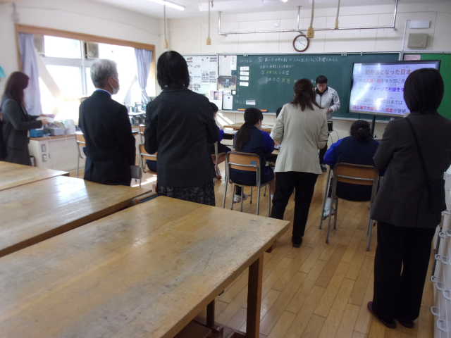 4日の午前中に教育委員の皆様が来校され、授業の様子を見学なさいました。「めあて」「学習内容」「まとめ」の一本化と振り返り活動の充実、指導方法の工夫・改善等の実施状況について確認していただきました。