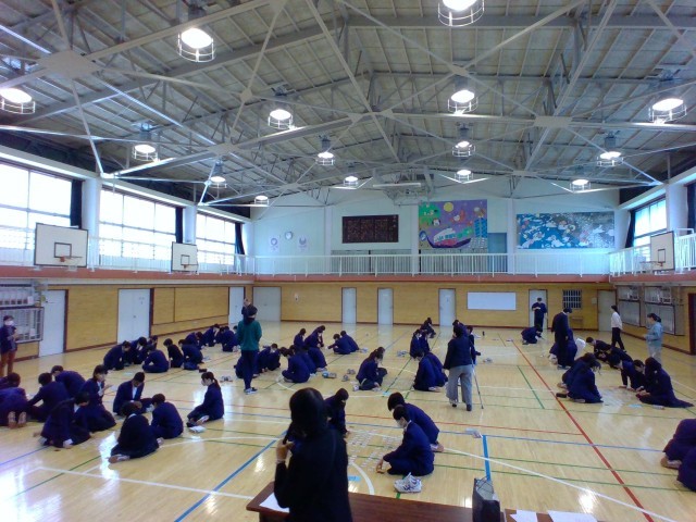 3月17日(火)の1時間目に、第1学年は百人一首大会を実施しました。国語科の教員に加え、学校長や学年の教員が読み手となった場面では大きく盛り上がり、1組、2組、4組の垣根を超えて、全員で楽しむことができました。