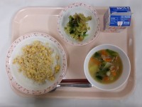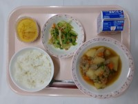 夏野菜カレーライス、わかめサラダ、アイスリザーブ、牛乳