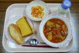 ミルクパン、タンドリーチキン、小松菜サラダ、ミネストローネ、カフェオーレゼリー、...