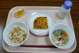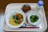 中華おこわ、錦卵のあんかけ、ワンタンスープ、美生柑、牛乳 給食のワンタンスープ...