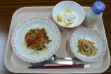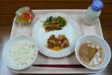 梅じゃこごはん、ポテトコロッケ、野菜のからしあえ、大根のみそ汁、牛乳 今日は豚...