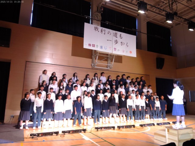 1年生はトップバッターだったことに加えて、初めて全校生徒の前で合唱するとあって緊張感がこちらまで伝わってきました