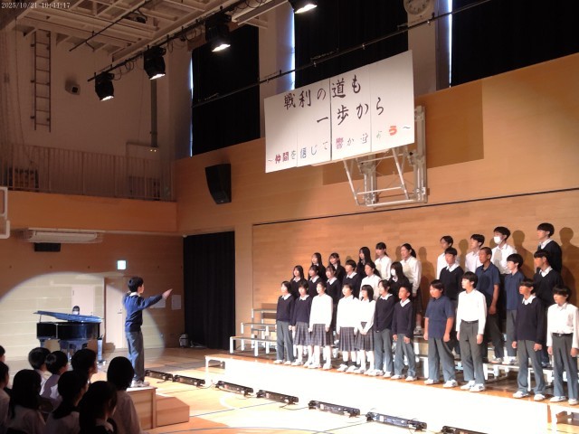 先日の文化祭リハーサルでの、2年生の合唱の様子です