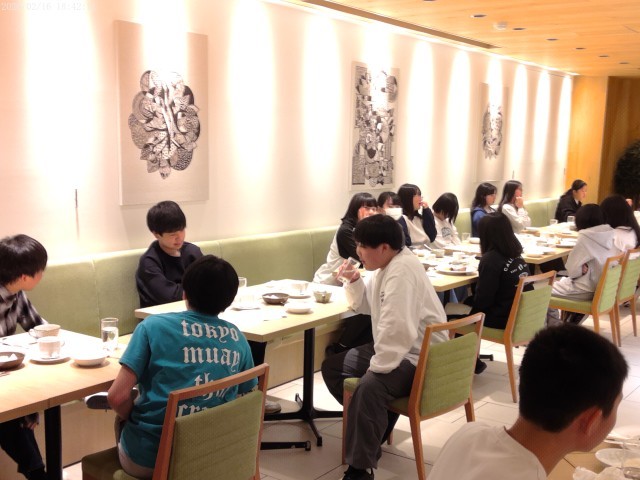 テーブルに並ぶ銀食器とメニューを見て「横浜のときのマナー講習おぼえてるか?」なんていう声が、あちこたの生徒から上がっていました。