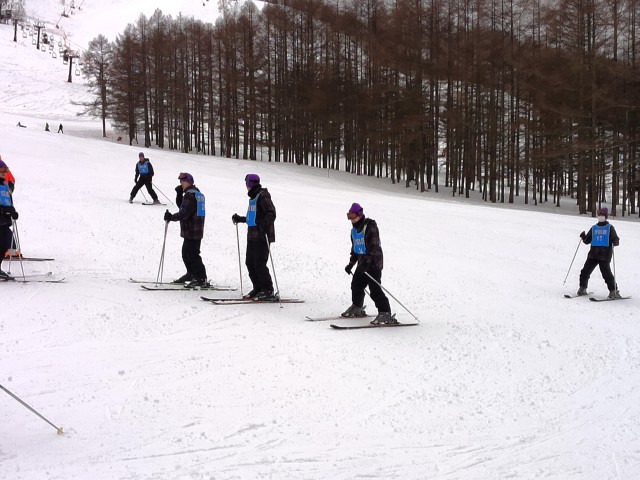 ここまでの練習で身につけたことを確認し、最終滑走を班や個人でどうやって滑るかなどを確認していました。