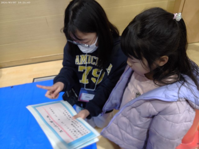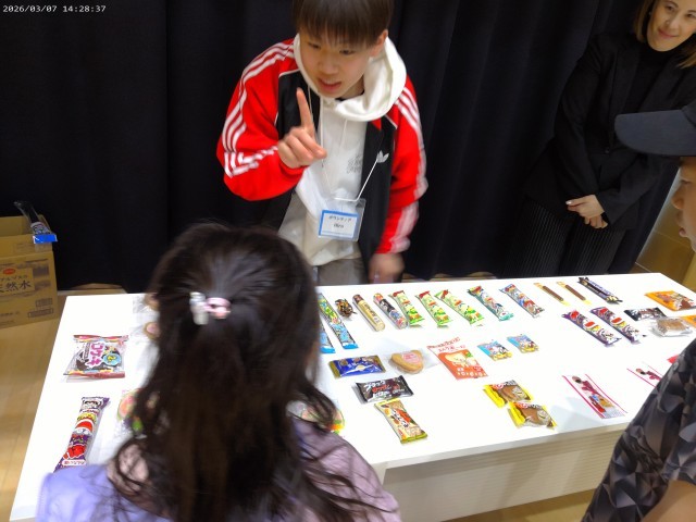 また、挑戦を終えて景品をもらうときにも、写真のように身振り手振りを交えて説明してくれるなど、自分たちでよく考え「おもてなし」の精神で、千中生らしい優しさでいっぱいでした。